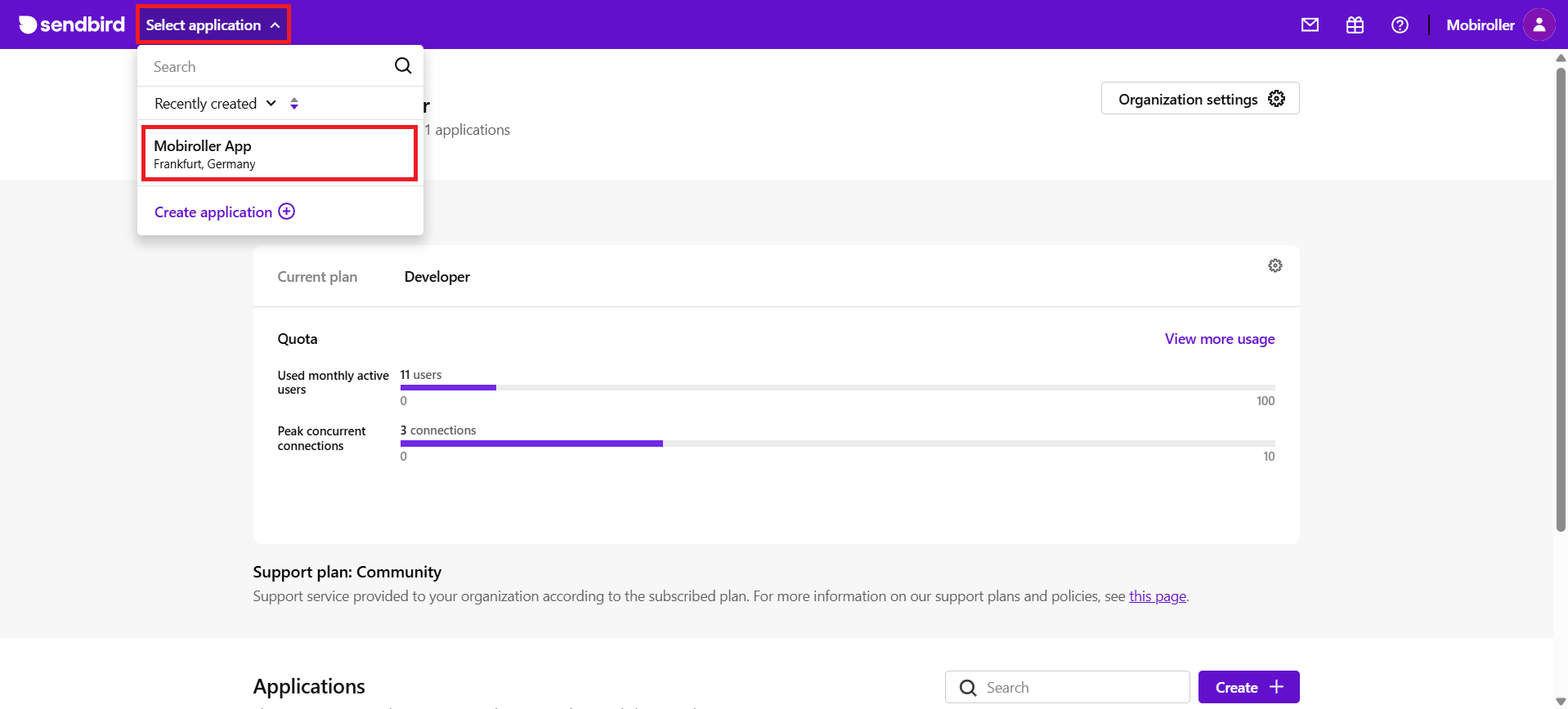 - Ardından sol üstte yer alan Select application kısmına tıklayarak ilgili projeyi seçin.