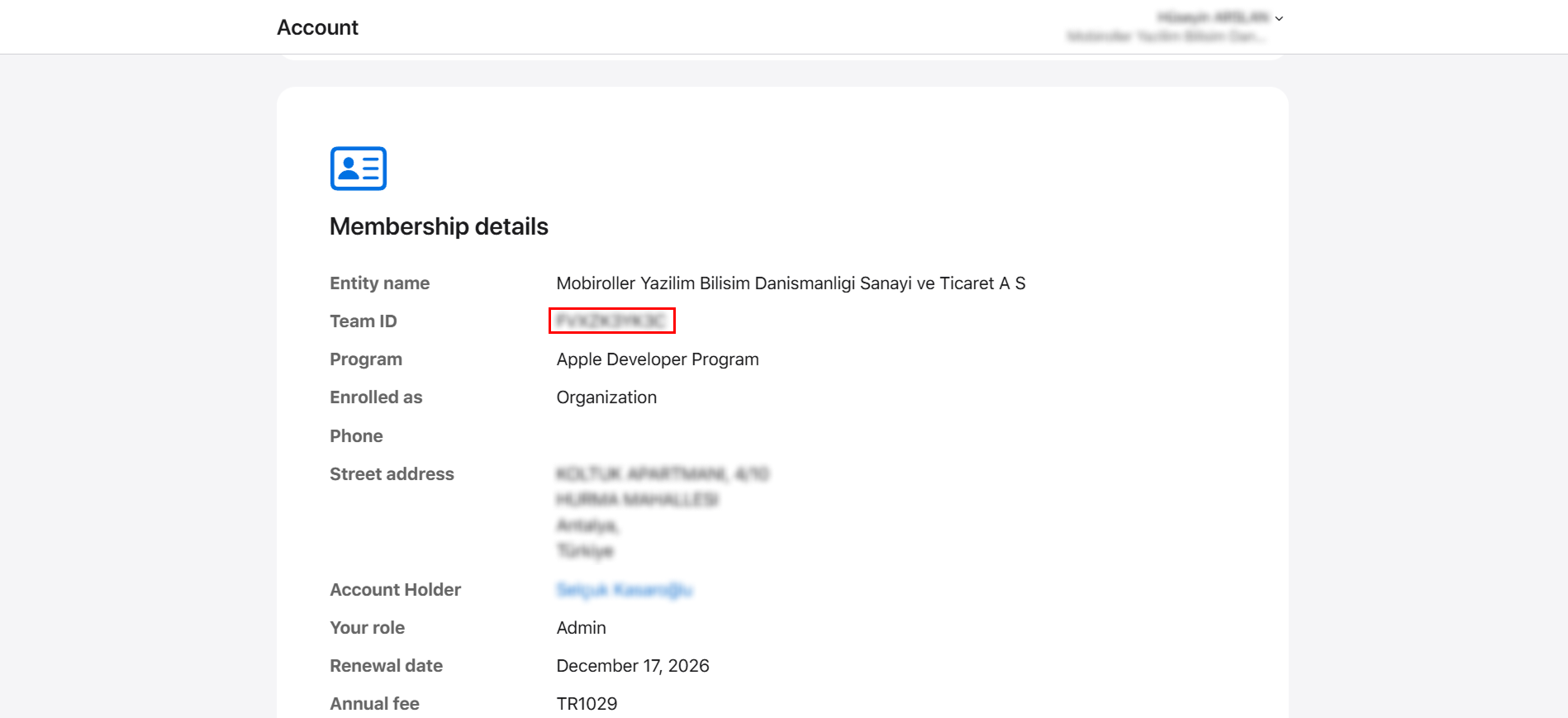 - Team ID değerine Apple Developer > Account > Membership details alanından erişebilirsiniz.