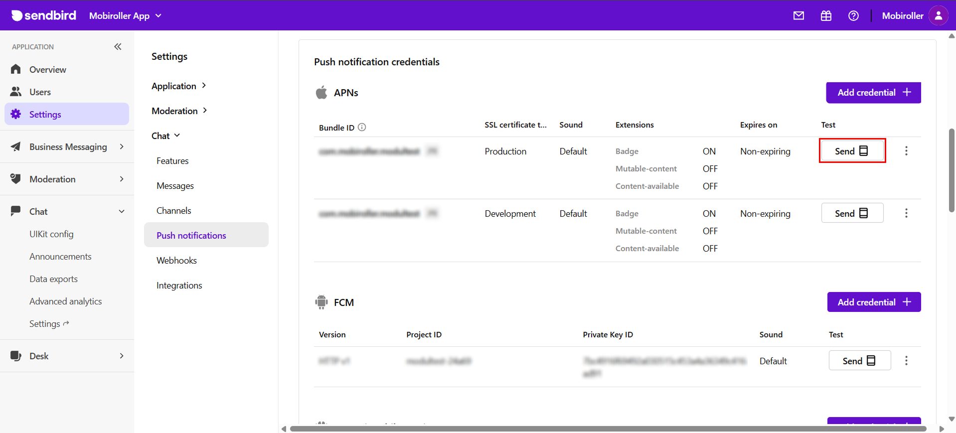- Sendbird’de gönderdiğiniz mesajlar için bildirim gönderilmesini istiyorsanız öncellikle Apple Developer hesabınızdan bir .p8 uzantılı Key dosyası oluşturmanız gerekmektedir. Bu dosyayı nasıl oluşturacağınıza dair detaylı bilgilere aşağıdaki dokümandan ulaşabilirsiniz. https://support.mobiroller.com/tr/bilgi-bankasi/ios-anlik-bildirim-icin-p8-dosyasi-nasil-olusturulur/